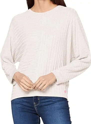 Street One dámský velmi příjemný svetřík v béžový barvě s žebrováním a dlouhými netopýřími rukávy.