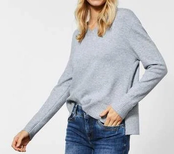 Street One dámský svetřík ve světle šedé barvě s véčkovým výstřihem a dlouhým rukávem.