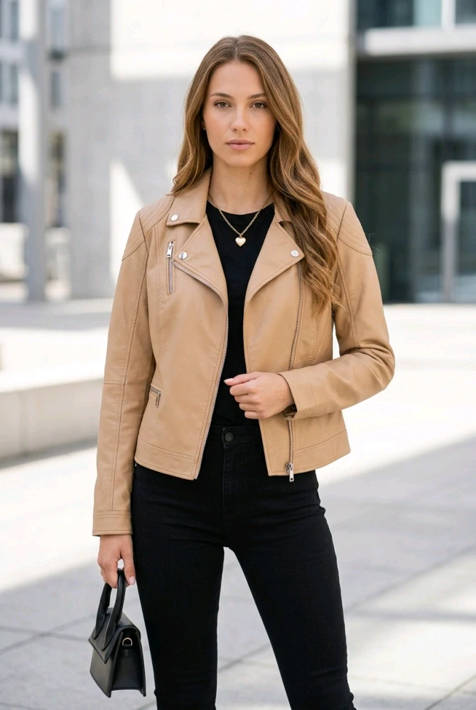 GAUDÍ ITALIA dámská stylová italská prémiová koženková bundička, křivák v hnědé přírodní barvě se zapínáním na zip. Boční kapsy na zip, luxusní viskozová podšívka. Neváhejte využít exkluzivní cenu na výprodej kolekce.