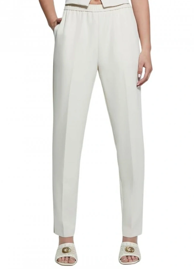 Guess dámské stylové a elegantní kalhoty ve světlé krémové barvě s bočními kapsami a častečně elastickým pasem.