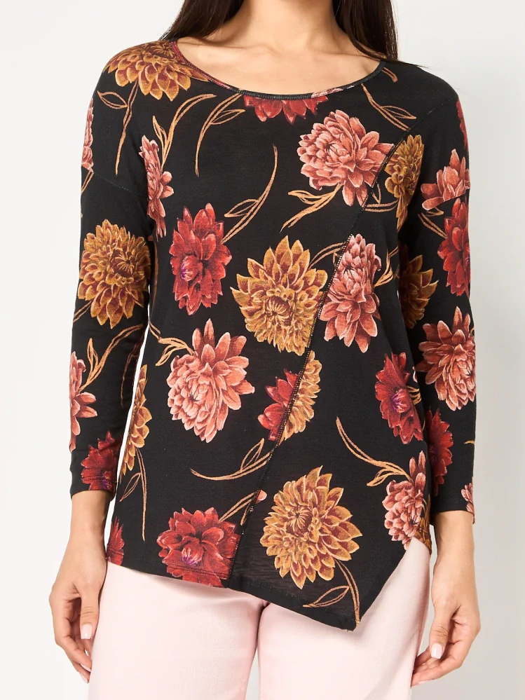 DESIGUAL dámské originální bavlněné triko s květovaným vzorem, kulatým výstřihem a asymetrickým spodním lemem.