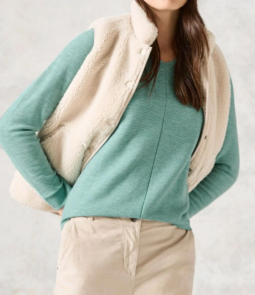 Cecil dámský příjemný a pohodlný svetřík ve světle zelené barvě s dlouhým rukávem a véčkovým výstřihem.